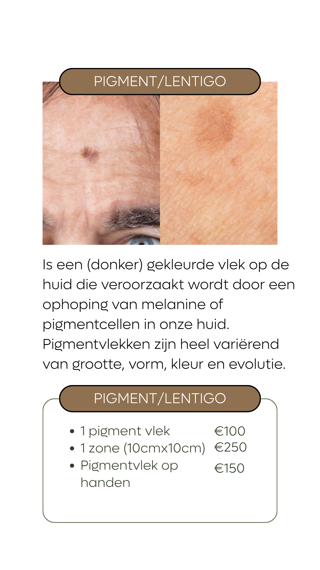 Gepigmenteerde laesies: zoals ouderdomsvlekken (lentigo), zonnevlekjes, naevi of seborrhoïsche keratosen.
