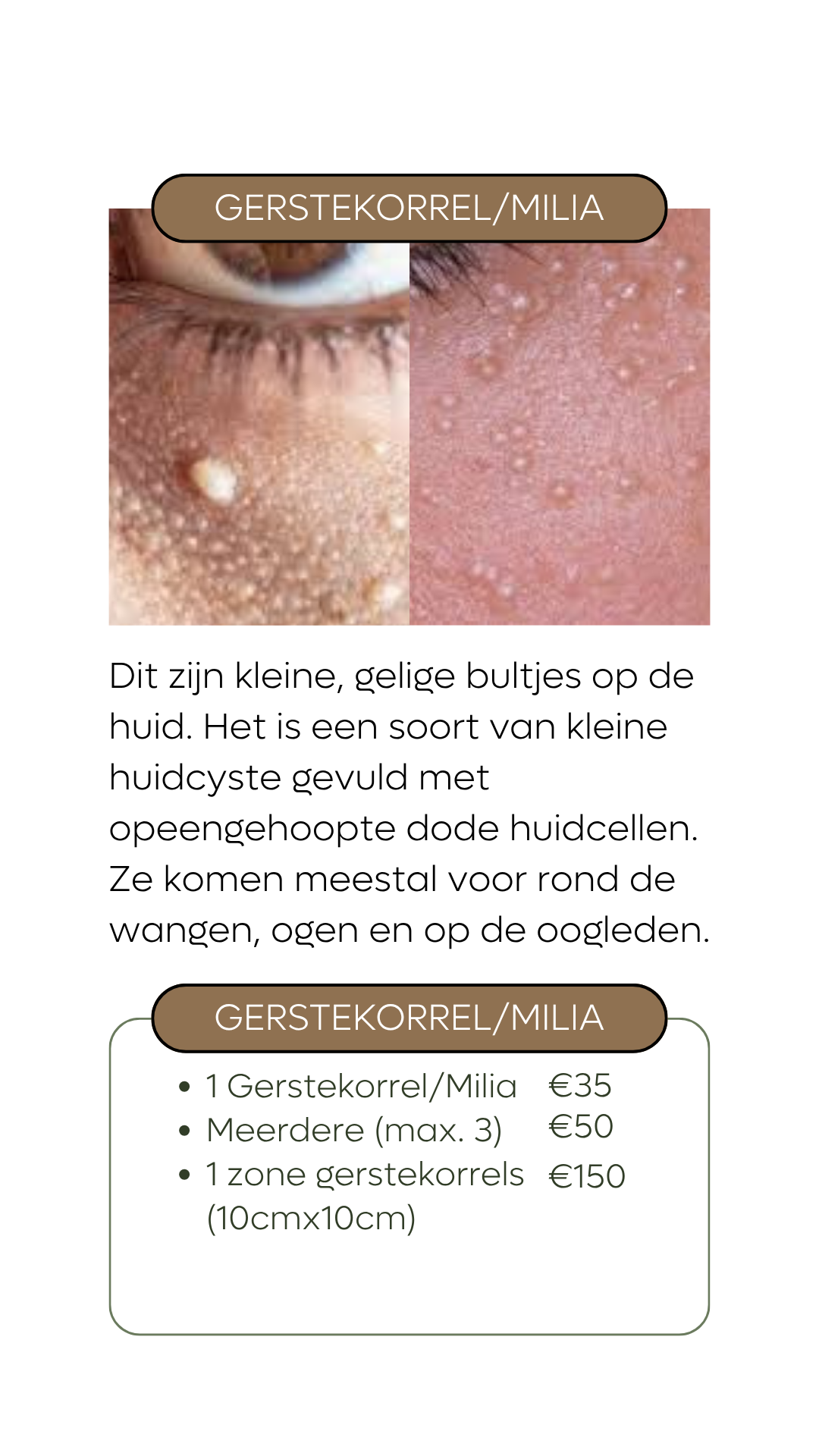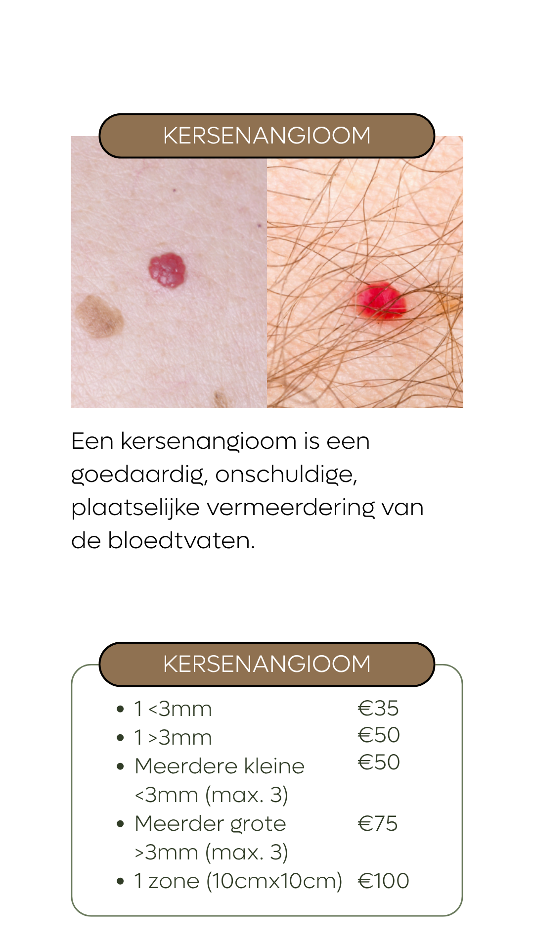 Wij behandelen enkel goedaardige huidimperfecties die om esthetische redenen storend zijn.